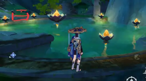 언덕아래 석상둘러싼 츄츄족/ 절벽쪽 상자있는 츄츄족집 / 물고기그림자 생기는 위치 3군데 토벌해서 초록석상3개 모인뒤에 시간조절 |