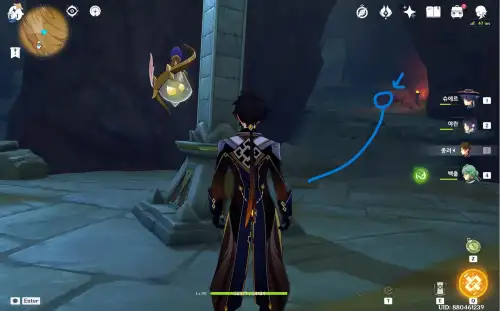 반대편 워프 3번 왕복해서 방향 회전해도 안됨. 푸리나, 야란, 카즈하 3명으로 달리기해서 깸 |