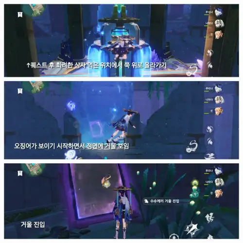 물 채워도 먹을 수 있음 우선 사진 첨부 해두겠음 1. 퀘스트 완료시 화려한 상자 받는 위치에 서기→위로 쭉 올라가기→푸른 벽 하고 그 안에 거울(+반대편 보면 눈동자랑 상자) 있음 위치 모르겠으면 사진에 맵스 참고→거울 들어가기→거울에서 나오면 눈동자와 상자 있음 |