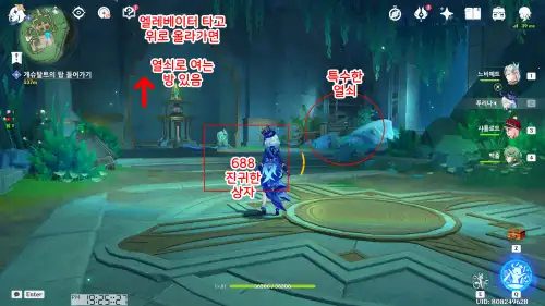 신의눈동자 29 or 화려한보물상자3 먹고 나뭇가지에서 활강해서 지도상 마킹 방향가면 아래 잘 보여서 바로 가넝(낮 추천) |
