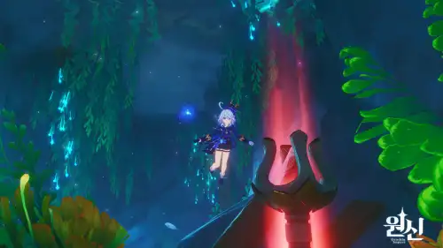 상자 정면을 바라본 기준에서 위쪽에 있는 3 기둥에 있는 풀기둥 활성화+태고의 불빛(상자 반대편 쪽에 있음)을 활성화후 활성화 되는 풀기둥까지 활성화하면 풀리는 기믹 |