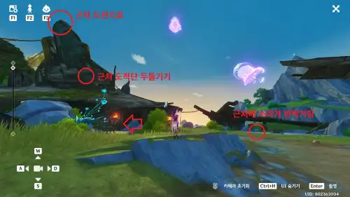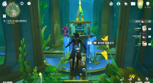 1. 물기둥 근처 슬라임 : 솔방울 갯수 = 순서 / 2. 횃불 근처 슬라임 : 불 다 끄면 됨 / 3. 불슬라임 근처 슬라임 : 슬라임 모두 처치 |