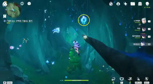 포탈 옆에 있는 '이색 풍선 문어 능력 생성기' 활성화 > T 누르면 몹 밀어짐 > 해파리 나무 밑으로 밀기 > 눈 먹기 |