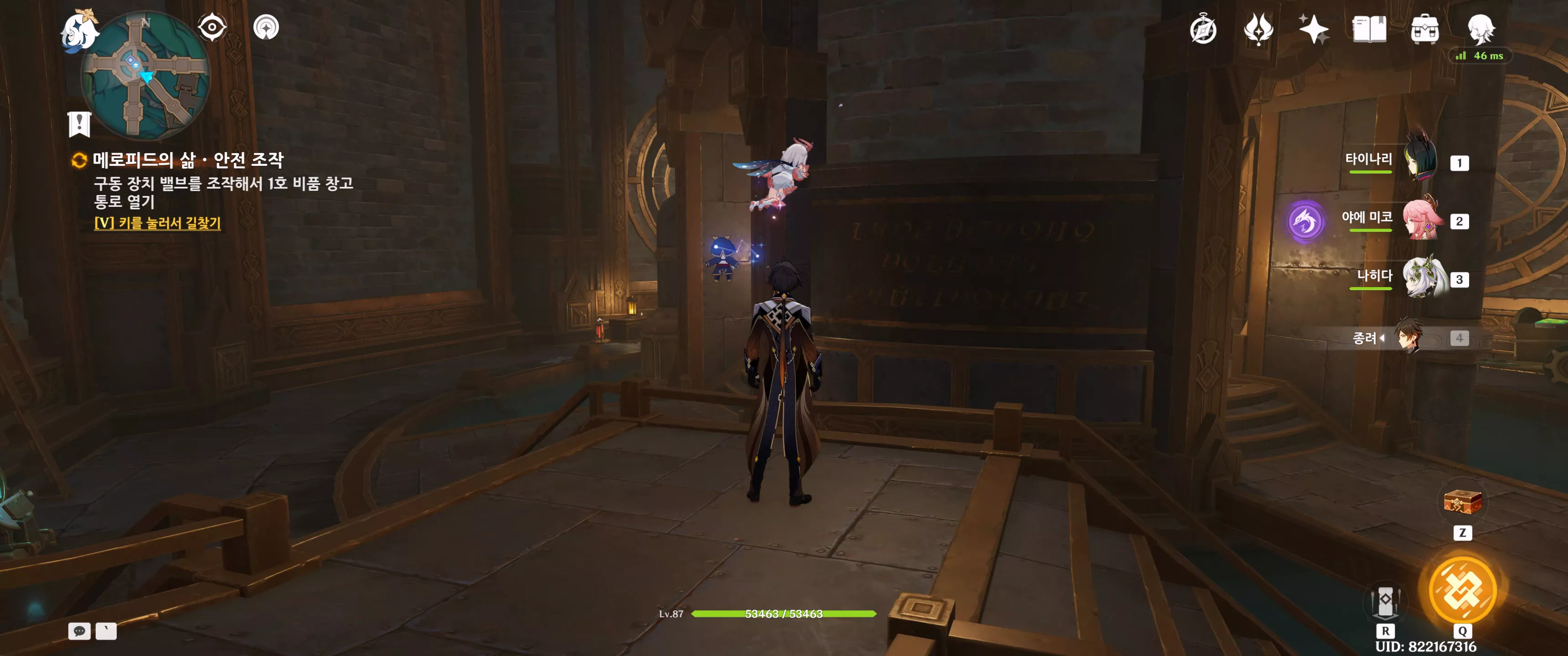 중앙 비석의 색에 따라 움직이는 비석이 물기둥을 활성화/비활성화 한다. -> 중앙기둥을 껐다 켰다하면서 -> 모든 비석을 같은 상태로 만들면 된다. |