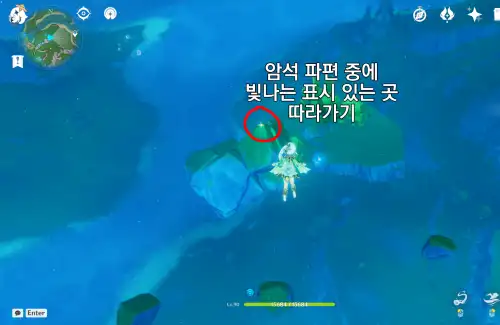 가는방법: 워프포인트 61에서 서쪽으로 잠수후 근처 폭탄 생물 이용해서 바위제거후 신의눈 112먹음 그 밑으로 계속 잠수하고 6시방향으로 달려가면 나옴 |