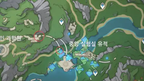 형광별 38 39번을 먹고 계단을 올라가 직진하다보면 물이 보여요. 물 아래에 들어가서 핀 위치로 가면 있습니다. |