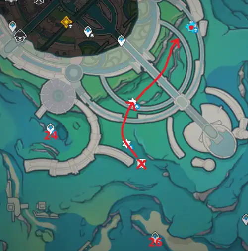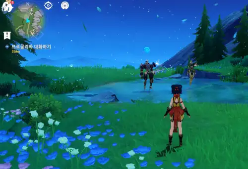 정교한 상자 있는 움막 오른쪽에 물뿌리개 있는데 손잡이 돌려서 꽃에 물 주면 물슬라임 한마리 나나옵니다. 걔 잡으면 구조물 맨 위로 데려다주는 포탈 생겨요 |