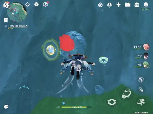 1. 건물 물속에 있는 장치에 프뉴마 충전 2. 카메라로 보이는 위치에 줍는 장치 놓기 3. 카메라로 줍는 장치에 에너지 옮기기 4. 충전된 장치를 상자 옆에 놓기 |