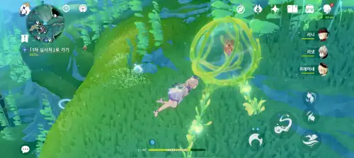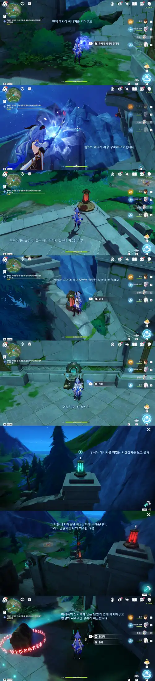 빨간꽃은 해파리 E 던져놓고 기계 옆에 한마리 일반 공격으로 때리는 동시에 E한번 더 누르면 세마리 동시 공격 가능해요 그 다음에 프뉴마-우시아 기믹 하시고 기계 작동 시켜서 리듬게임 하시면 됨 |
