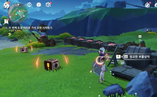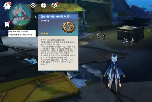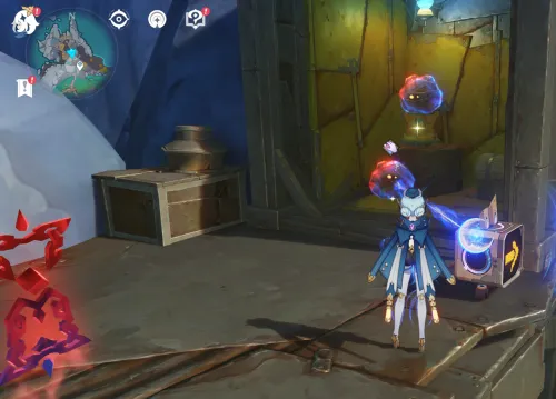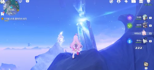 절벽아래.투명벽있으면 현위치에서 좌하단으로 절벽아래 길 따라가다보면 페이몬이 파란색 선령같은것을 발견하며 월드임무 시작됨. 선령 따라 결계 앞 도착후 파란색 점프대로 활공하며 결계안 열쇠랑 상호작용, 4개의잠금장치를 위에서부터 비비며 해제하여 입장가능 |