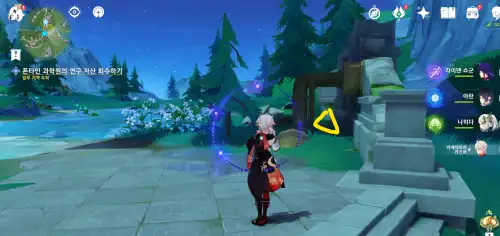 물가 동쪽에 있는 결정: 폰타인 보물상자 [#위치태그] 번에서 사용한 이동식 에너지 저장 장치로 감옥 해금 후 이동가능 |