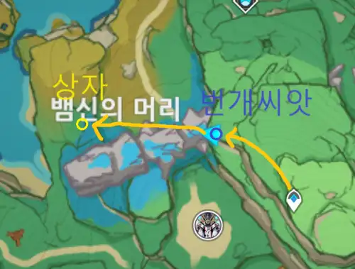 물 안 들어가면 돌 파편들 중에 조사포인트처럼 반짝 표시 있고 가까이 가면 다른 돌로 옮겨감. 5~6번 정도 쫓아가면 상자 등장. |