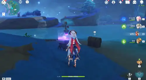 134 상자 주변으로 3개의 물줄기가 이어져 있고 끝에 물대포 있음. 각 대포 타면 진귀한 상자 3개 기믹으로 연결됨. 7시상자는 물대포를 몇 번 더 갈아타며 위로 올라가서 상자옆에 착지해야 함. 낙사주의(카즈하 있으면 편함) 12시 상자는 올라가서 물정령과 싸워야함. 물속성 상대할 파티 추천. 3시 상자는 징검다리 기믹으로 활캐 추천. |