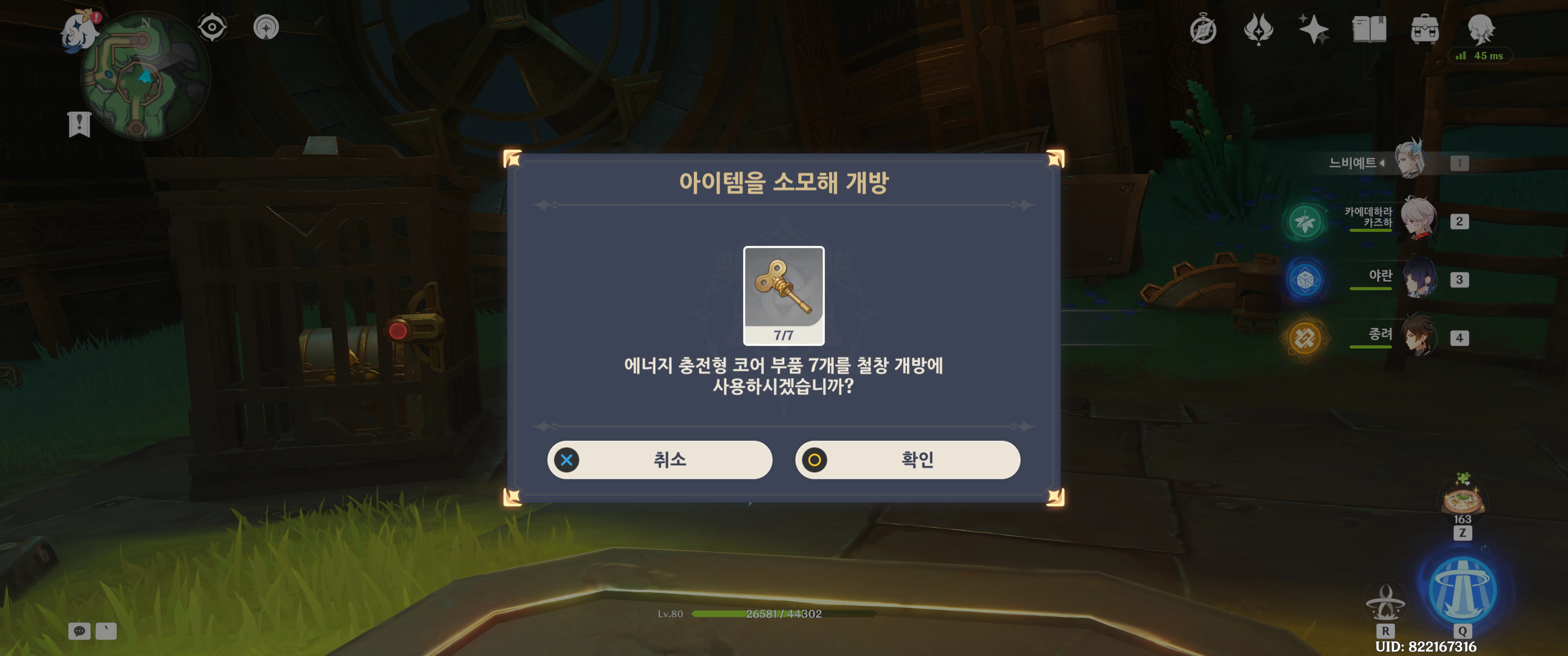 1. 습도결정(움직이는 돌)에 걸린 고리를 아무 기둥에다가 전달 2. 습도결정에 고리가 없는 상태에서 가운데 기둥을 공격해서 고리개수를 2개로 줄여줌 3. 습도결정을 계속 이동시켜 결정에 고리가 걸리게 만들어줌 4. 가운데 기둥을 다시 치면 고리 개수가 반전되며 2개에서 5개로 늘어남 5. 걸린 고리를 안 걸린 곳에 걸어줌 6. 가운데 기둥을 공격하면 모든 봉인이 해제됨 |