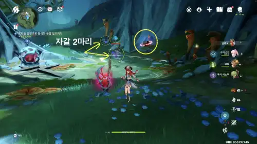 폭포 아래 우시아 에너지 먹고 밖으로 나오면 16/22 상태에 눈 앞에 프뉴무시아 보관함 있음 먹은 우시아 에너지로 보관함 깨면 나머지 6개 다 먹어진 걸로 판정됨 |