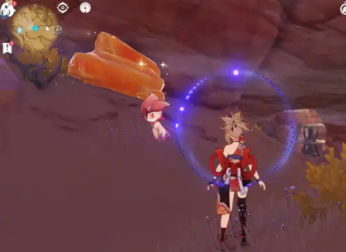 풍차 국화는 금빛으로 찬란하게 빛나는 꽃이구나, 따뜻하고 반짝거려 게다가 페이몬 말대로 빙글빙글 돌아가네! 으으, 오래 봤더니 조금 눈부신걸... / 금빛으로 빛나고... 눈이 부셔? / 풍차 국화가 이렇게 빛나면 「풍차」도 분명 빛나겠지? 아마 사람들은 집에 두고 등불로 쓸 거야 / ...풍차는 그런 식으로 쓰는 게 아니야 |