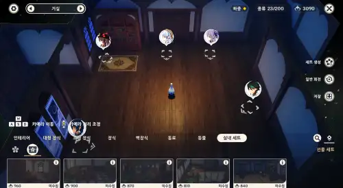 건물 실내로 이동->실내 편집->실내세트->상자모양->840점짜리 '먹향의 서재' 세트도면 유무 확인 |