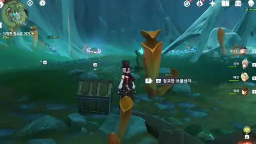 이거 그냥 활성화하고 근처에 파란색으로 반짝이는곳 찾으세요. 조사 누르면 가오리기계가 나오는데 처치하면 상자 풀립니다 |