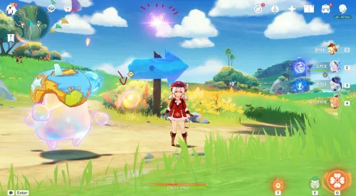여자아이 있는 곳의 알파카 석상을 아샤로 빙의해서 파란색으로 칠하면 모라 상자 나오네용! |
