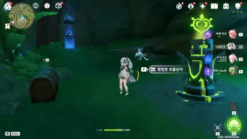 눈동자 아래 물방울 만지면 보물상자나옵니다. 그 상자열면 눈동자위치로 워프시켜줍니다. |