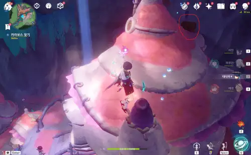 윗쪽에 있습니다. 동굴 들어오면 보이는 민트색 소라개 있는 건물 |