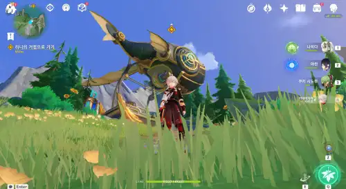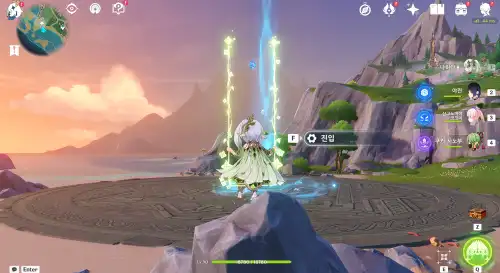 신호 보내기 도전 중 아헤스에게 말 걸면 신호를 다시 확인할 수 있음. 대화 종료 선택지로 알았어를 누르면 직접 신호를 보낼 수 있고, 어려워를 누르면 아헤스가 대신 신호를 보내줌. |