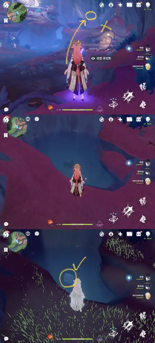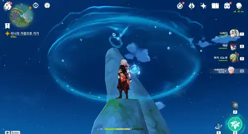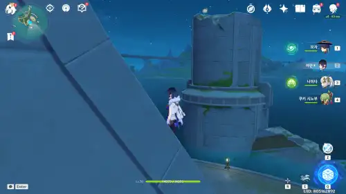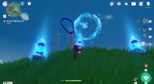 신묘한 상자 관련 물 구슬에서 위쪽을 쳐다보면 보이는 좀 더 높은 봉우리 끝에서 시작. 시작위치로 조정함. |