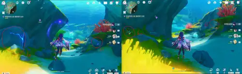 해당 워프 포인트 기준 서쪽 동굴 속 웅덩이와 수선화의 안: 제 3막이 끝난 장소(폰타인 보물상자@217)가 서로 연결되어있습니다 |