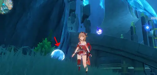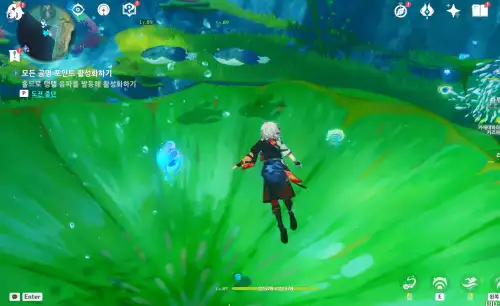폰타인 워프포인트12에서 타준 뒤, 뒤로 보면 열기구 있음 보라색 공명석 열기구에 넣어서 작동시켜 하늘위로 쭉쭉 올라가면 됨. |