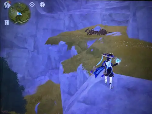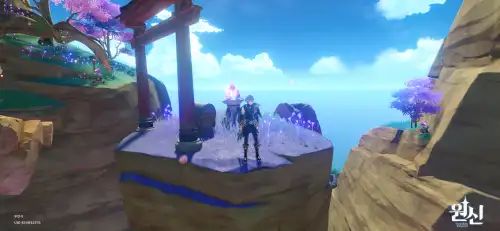 1. 지도에 뱀신의머리 글자 왼쪽 물가까지 날아가야함. 2. 바닥에 보라색 빛나는 기믹 기둥들이 있는 곳까지가면 동굴입구가 보임. 3. 큰원형 기믹과 테마리 꼬마옆 번개씨앗 사용해 2층으로 이동하면 위에 사진에보이는 위치임 |