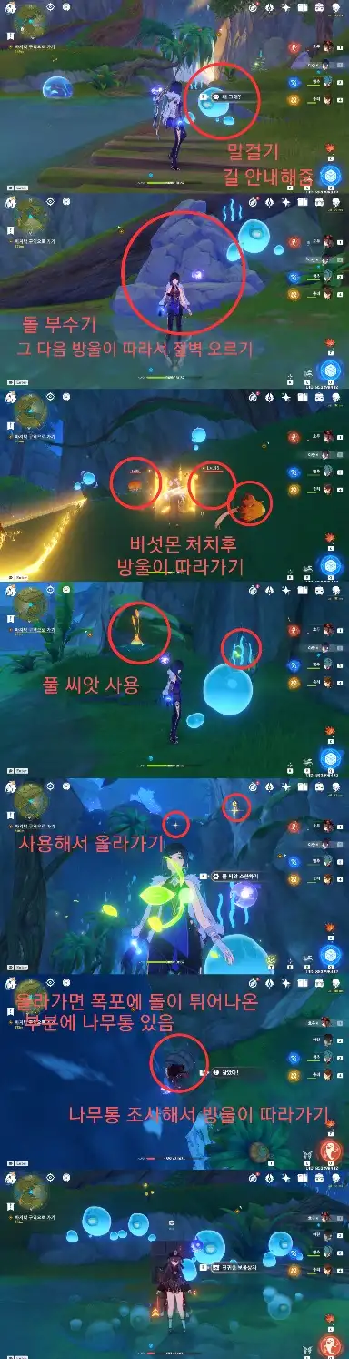 방울이 주변 불슬라임 처치후 풀씨앗 봉인을 풀어줍니다. 그 후 과녁 3개 맞추면 평범한 보물상자 |