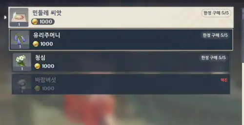 이나즈마스토리하고 라이덴 전임만 끝낸 상태로 울림풀 사러왔더니 울림풀이랑 산호진주 안팜. 둘 사는 데는 선행조건 있는 듯? 아래 사진이 내 화면이었음 |