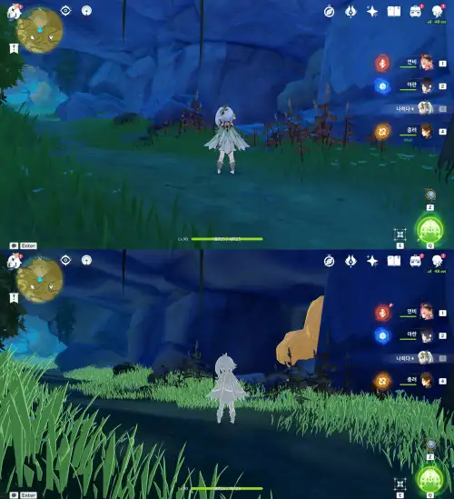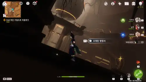 위에 반짝이는 꽃 소루쉬 e로 먹으면 q 스킬이 생김, 바로 아래 바위 쪽으로 가서 q 누르면 됨 |