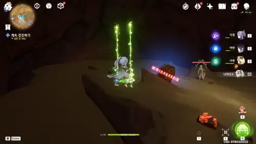 숲의 책 4번 눌렀을 때 함께 모험하던 곳으로.. 뜨면 월드임무 [#위치태그] 아직 수주 안한거니까 이쪽으로 오시면 도금여단과 페이몬 대사 뜹니다. |