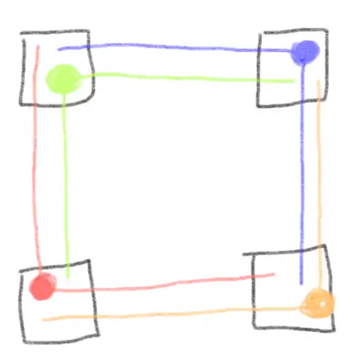 대각선 방향을 제외한 나머지 두개의 큐브와 연결됨 |