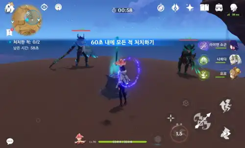 60초 내에 츄츄 물/바람 순찰자 처치하기 |