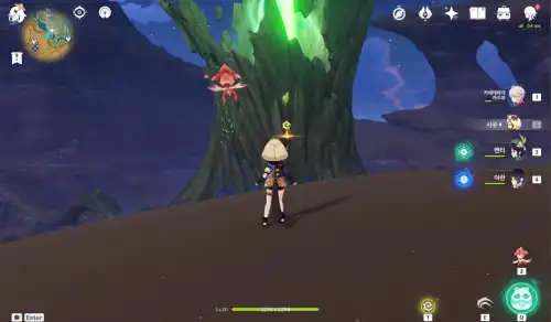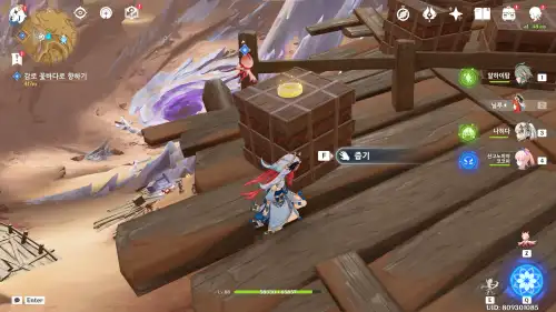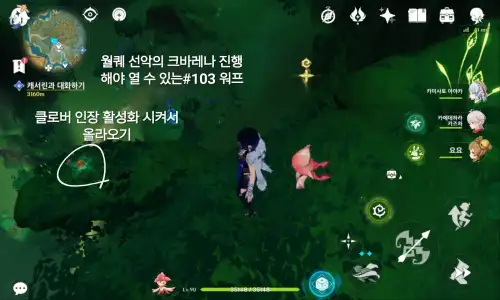 공중에 떠있는 꽃봉우리를 소루쉬랑 상호작용하면 발판과 클로버인장이 생김. |