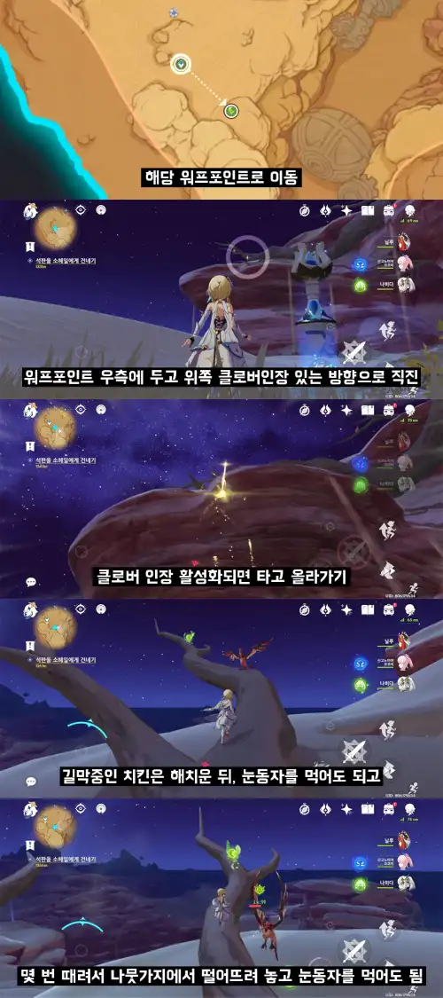 두번째까지는 파쿠르해서 가능、두번째 기둥 바닥에서 바위행자e깔면 됨 |