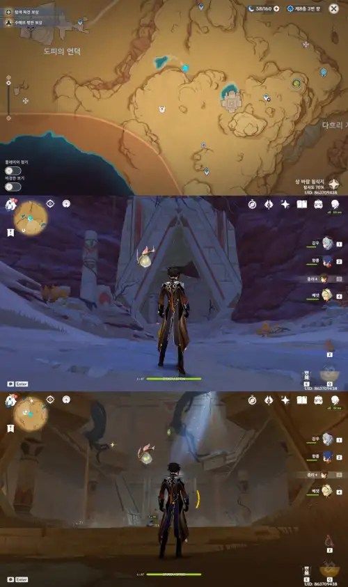 건망증 대왕의 탐험기에서 벽화사진 찍으라는데 3면이라서 3개 채워짐 |