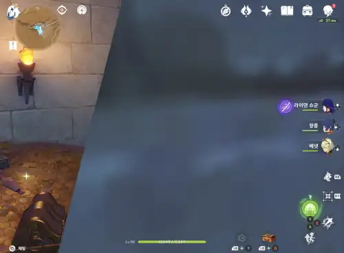 펌프 오른쪽으로 돌림 - 빨간 표시된 장치 가까이 가면 구조체 2마리 나옴, 잡으면 선령같은 빛 생김 - 펌프를 왼쪽으로 돌림 - 선풍기 끔 - 불빛 이동시킴. |