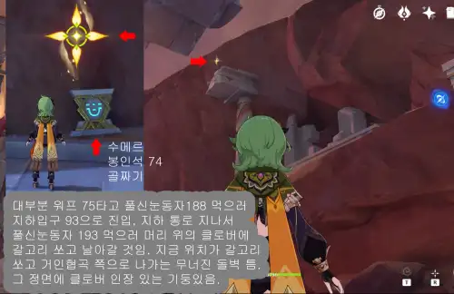 입구는 워프포인트[#위치태그]에서 9시방향으로 가서 보면 절벽 앞에 기계몹 두마리 있고, 그 밑을 보면 내려갈수 있는 턱이 있어요 거기로 내려가서 다시 12시 방향으로 가서 내려보면 문이 있어요 문은 아도니스 옆의 상자에서 열쇠를 먹어야([#위치태그]) 열 수 있습니다 퍼즐은 추천댓글 참고하세요 |