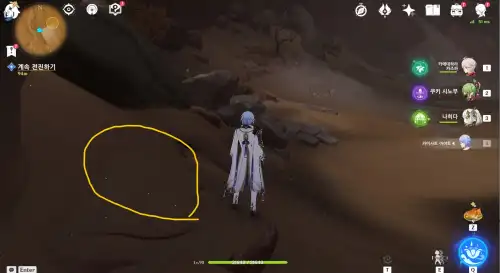 피닉스 잡는 곳에서 균열 사이로 쭉 들어와서 맨 밑에 물이 있는 층과 같은 높이 |