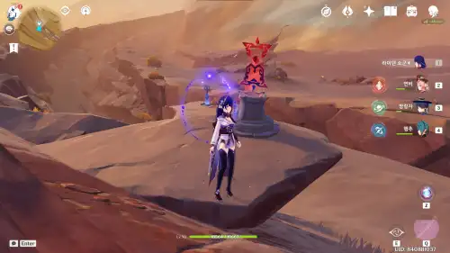수메르워프 75로 포탈타면 8시30분 방향을 보고 소환됨. 그 아래 바닥에 클로버인장 있고 갈고리 쏴서 착지. 여기 바닥이 깨진 보도블록임. 떨어지지 않게 보도블록 가장자리 따라서 이동하면 보도블록 끝에 아주 약간 흙모래 같은 바닥이 나옴. 거기 서서 뒤쪽보면 보임 |