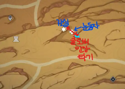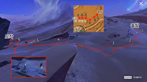 끝나는 위치 맵 보았을때 타니트 야영지에서 '야' 글씨 위 |