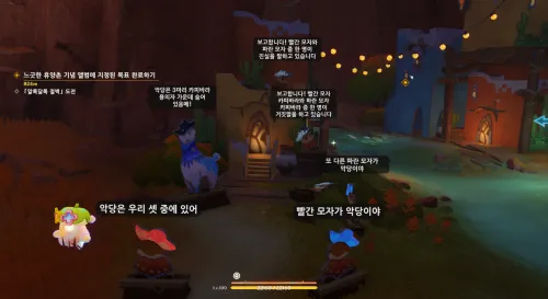 무작정 색을 칠하는게 아니라 상자 앞에 있는 관광객들 대사에 맞추어 색을 칠해줘야 다음 단계로 넘어감 (우인당 방문) |