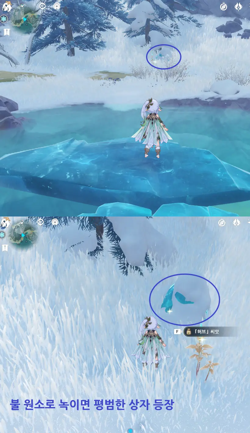 상자 안나오는 사람은 풀입자 먹을때 절벽위 올라간곳 거기에 있어요. 상자위치는 고정인데 마지막 풀입자 먹는 위치가 서로 달라서 그런듯 |