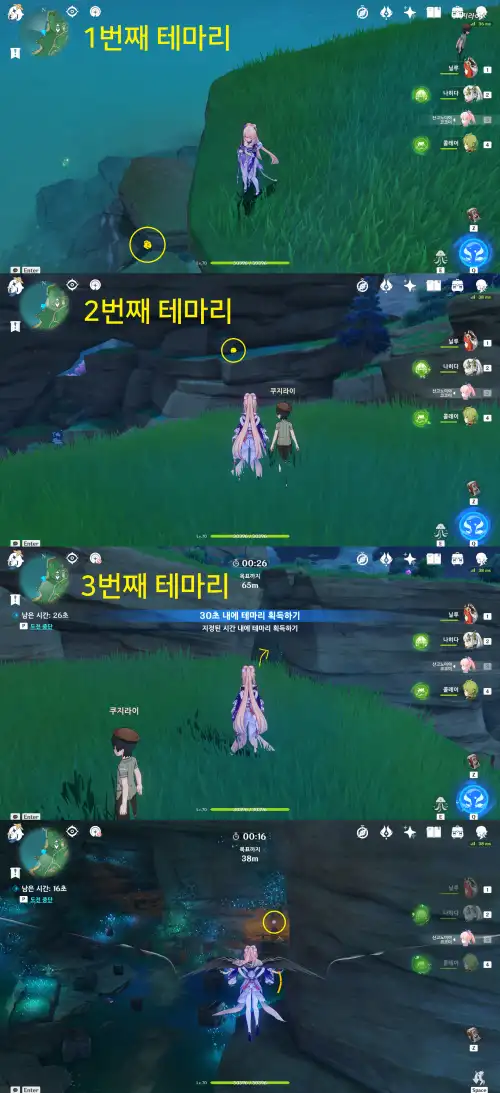 1, 3번째는 그냥 뇌극 타고가면 눈앞에 보이고 2번째는 뇌극 다 타고 절벽 꼭대기까지 올라가면 있음 |