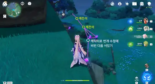 상자 앞에서 유명석 누르면 열림(만렙 기준 한방), 이후에 윈드 필드 생성되는데 그거 이용해서 선령 모으기. 다 모으고 다시 윈드필드를 열어 상승기류+가속링으로 수정석 먹기 |