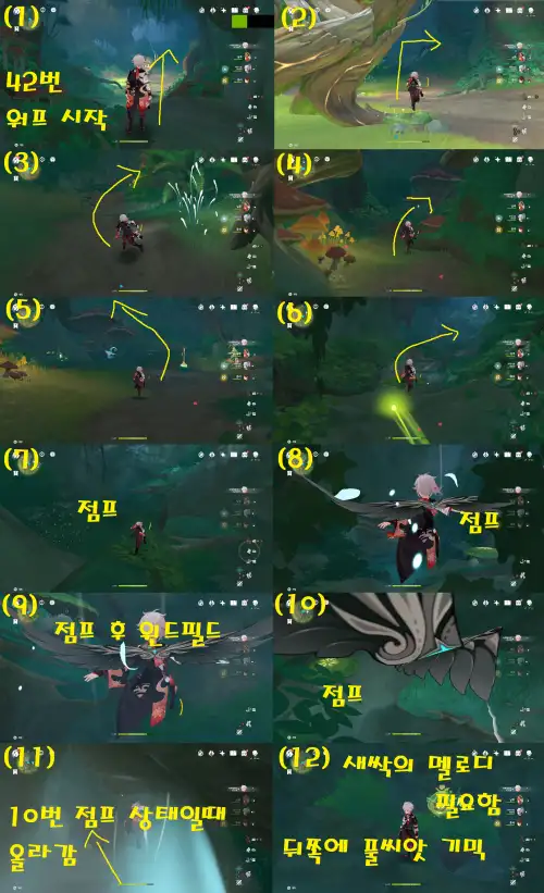 16번 워프 꽃잎주머니 발동시켜서 남쪽 나무로 날아오면 거기서 이 위치로 날아올 수 있음. 풀씨앗먹고 아래로 한칸 내려가면 바위 보임 |