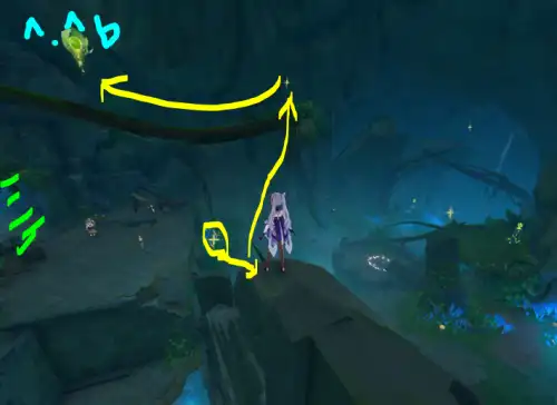 신상 북쪽 입구로 들어왔으면 1)눈동자있던오아시스 등지고 전진하다 2)좌측상단 클로버인장타고 동굴따라 곧장 가면 보임 |